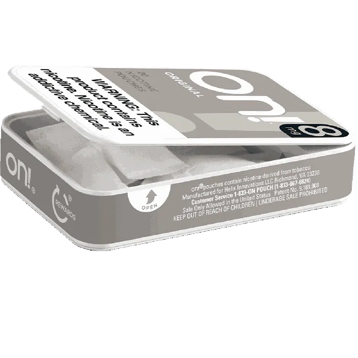 On! Original 8mg nicotine pouches are tobacco leaf-free and unflavored, with each pouch delivering 8mg of nicotine. Each can contains 20 mini-dry pouches and can be purchased individually or in multipacks of 5, 10, 25, or 50 at competitive prices. The Original pouches are also offered in two other nicotine strengths: 2mg and 4mg.